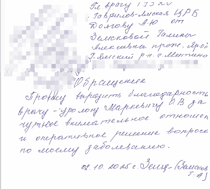 Благодарность от пациента